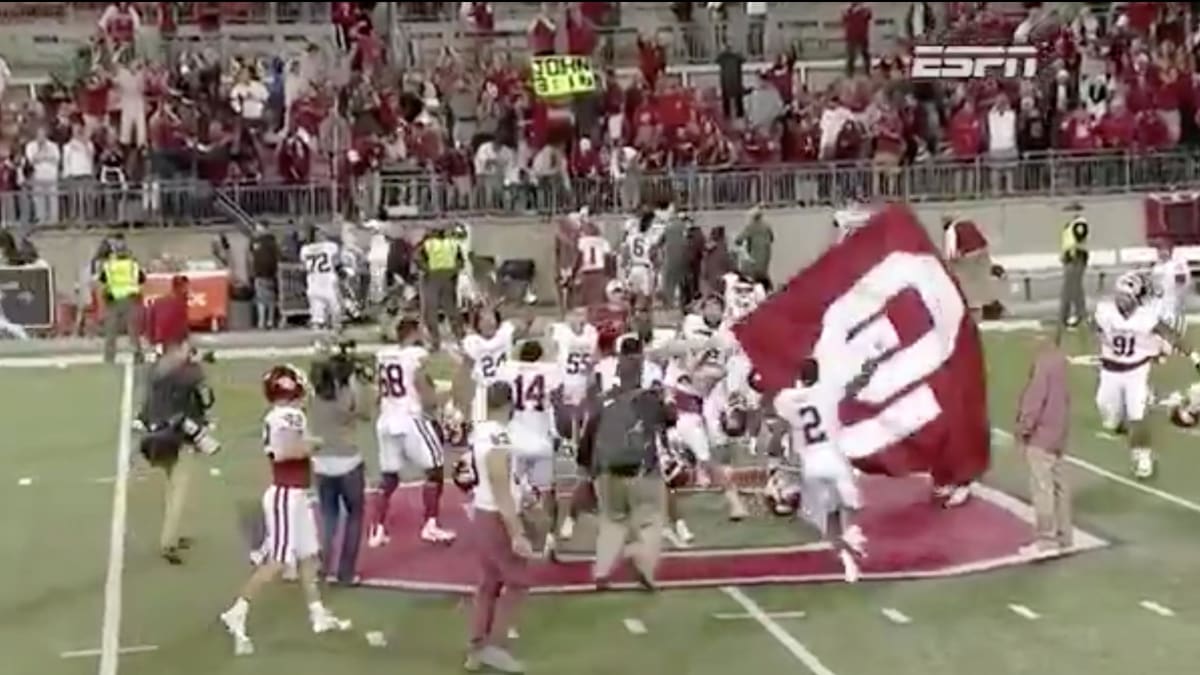 Baker Mayfield Plants Oklahoma Flag On Ohio State Logo After Win